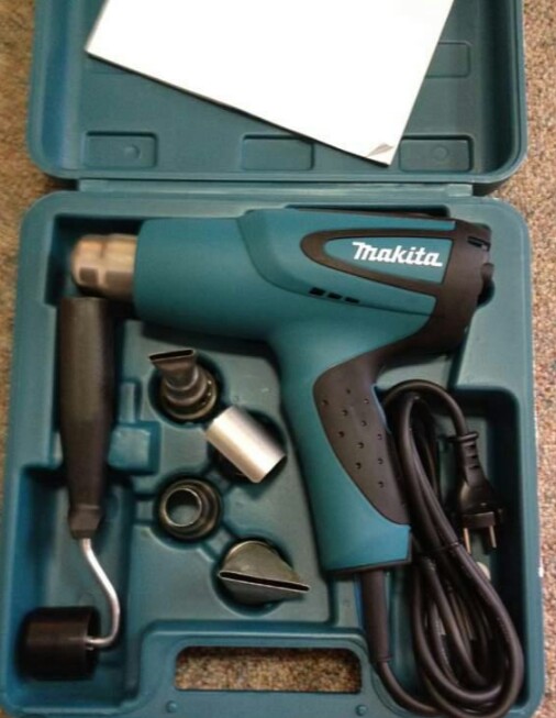 - Бытовой. Этот прибор рассчитан на небольшой объем выполняемых работ. Максимальная продолжительность непрерывной работы такого инструмента составляет не более 15 минут. У инструментов этого типа, обычно, отсутствует функция плавной регулировки температуры, а максимальная температура нагрева воздушного потока достигает 500ºС, в редких случаях – 560ºС. Преимущества такого инструмента заключаются в его доступной цене, простоте эксплуатации и минимальном потреблении электроэнергии. К недостаткам можно отнести короткий промежуток времени непрерывной работы, малую мощность и малый набор дополнительных функций.