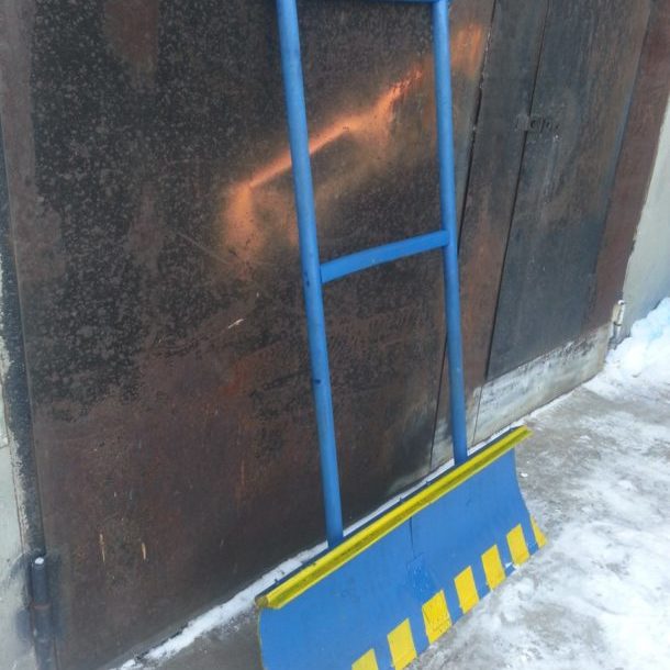 Самодельный инструмент сооружают из деревянного бруса и достаточно плотного (от 5 мм толщиной) листа фанеры. Пластиковый скребок можно сделать из отслуживших свой срок предметов быта: подноса или бочки. Для продления срока службы деревянного и пластмассового полотна его кромку обрамляют стальной полосой: