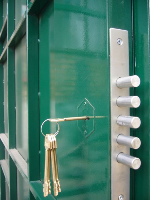 - лучше ставить, как минимум, два замка и подальше друг от друга – это правило работает так же, как и с замками в квартире;