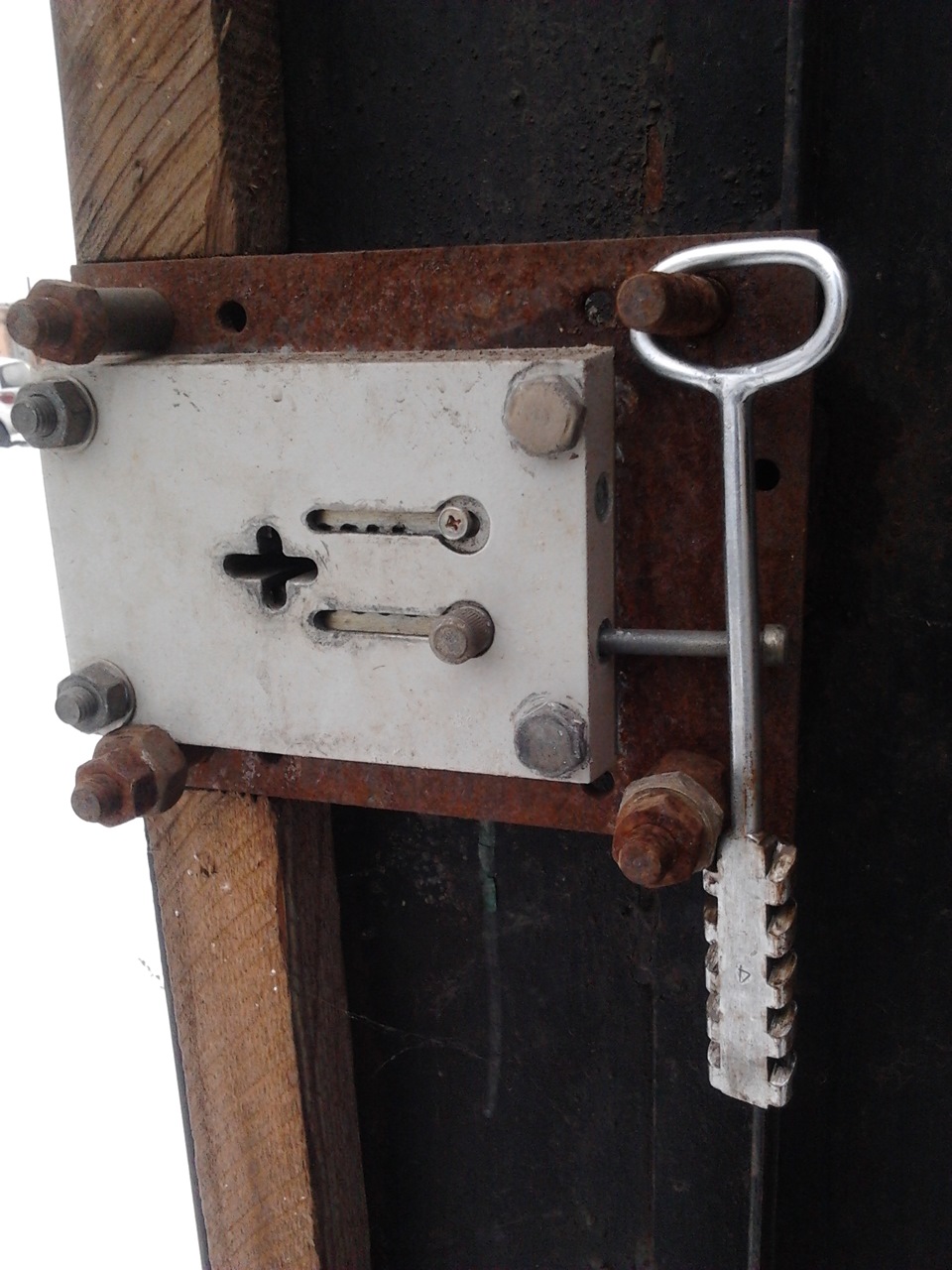 К счастью, придуманы более-менее надежные навесные замки. Их часто называют «черепаха». От классических амбарных навесных замков они отличаются конструкцией, которая защищает проушины. Кроме того, в таком механизме достаточно толстый запирающий палец, потому замок можно использовать и в качестве второго дополнительного, только надо, чтобы он плотно прилегал к воротам, иначе злоумышленник сможет завести под него монтировку или трос, а дальше все по классической схеме.